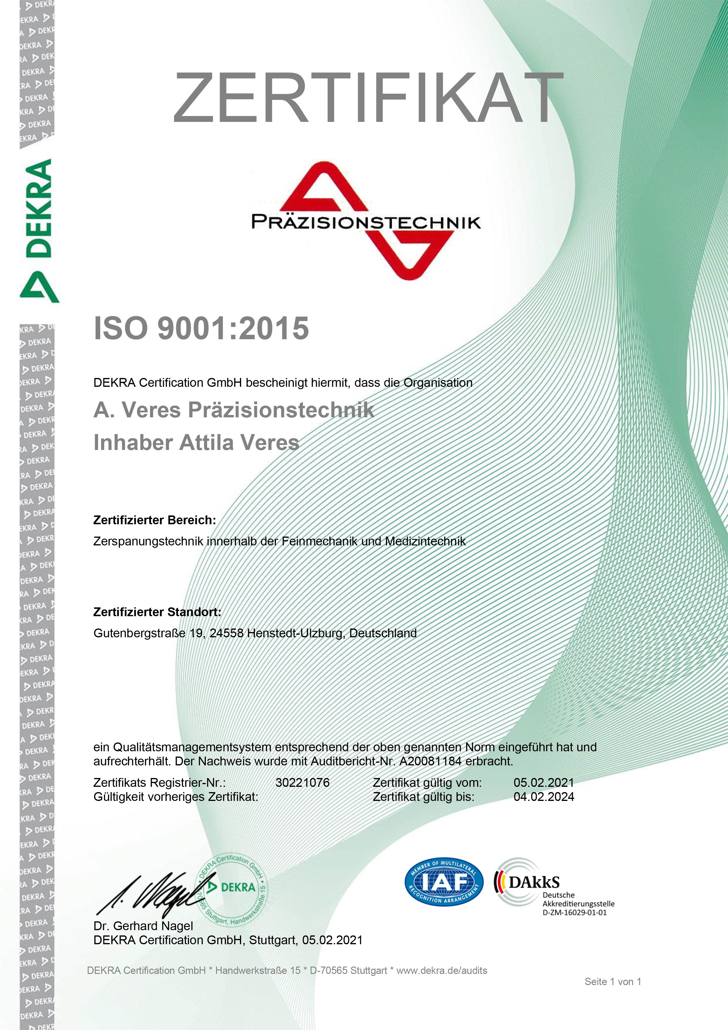 A. Veres Präzisionstechnik Gutenbergstraße 19 24558 Henstedt-Ulzburg
